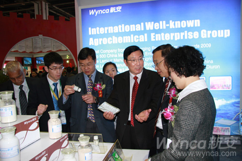 開幕式結束后,中國石油和化學工業聯合會趙俊貴副會長、中國貿促會化工行業分會馬春艷副秘書長、中國農業部農藥檢定所葉貴標處長等領導,在總經理的陪同下,重點參觀了公司的特裝展位(如圖)。趙俊貴等領導在認真聽取了集團公司的經營情況、技術開發、市場推廣和未來規劃后,對近幾年來取得的輝煌成就給予了高度贊譽。