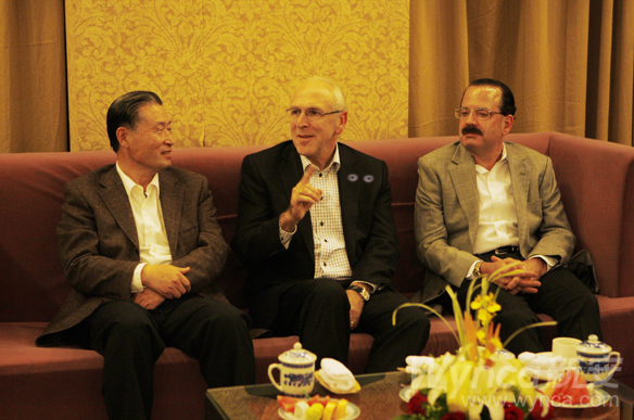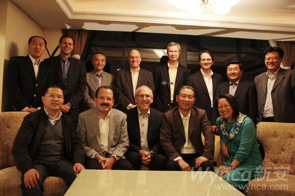 道格.約翰斯先生(后左二)、比爾.卡特先生(后右四)、 約翰.當道夫先生(后左四)、方江南副總經理(后右二)