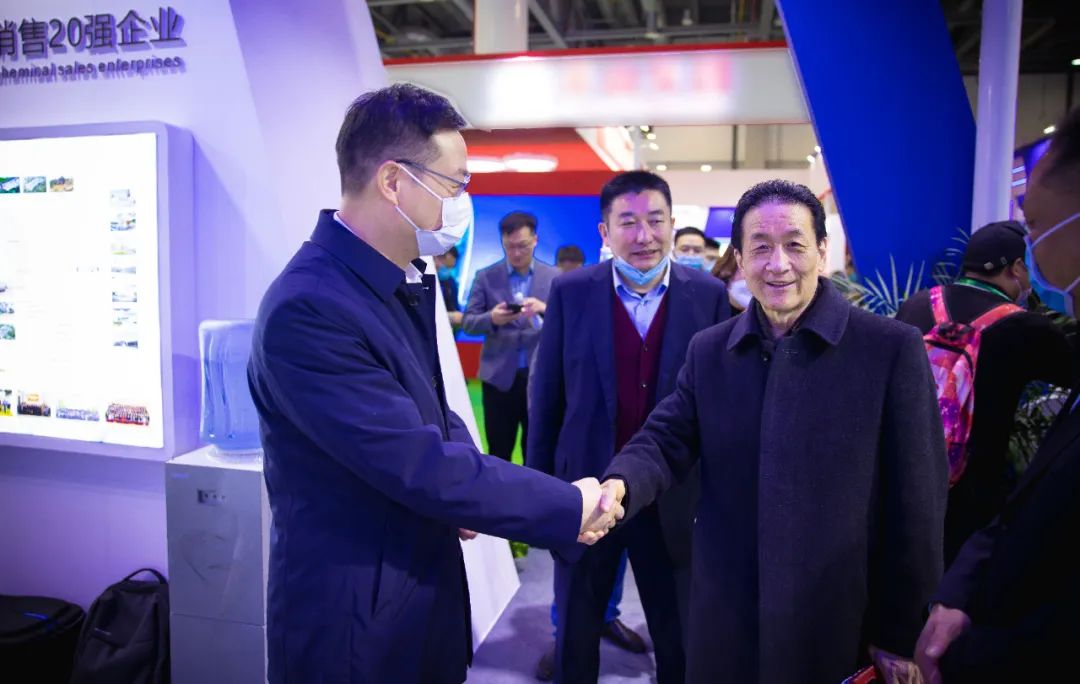 中國石油和化學工業聯合會副會長李彬、中國農藥發展與應用協會會長周普國、中國農藥工業協會會長孫叔寶等政府和行業協會領導走訪新安集團展臺,對新安的全球布局、高質量發展表示肯定與贊賞,并對布展、參會等工作做出指導。