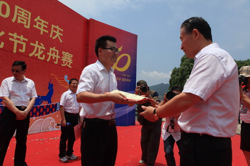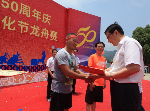 瀏覽量:4902 6月20日,新安集團創建50周年慶暨第四屆新安文化節龍舟賽在新安江上舉行,共有16支代表隊參加本次競賽。
